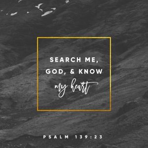 David, in Psalm 139:23-24 prays, “Search me, O God, and know my heart; test me and know my anxious thoughts. Point out anything in me that offends You, and lead me along the path of everlasting life.”
